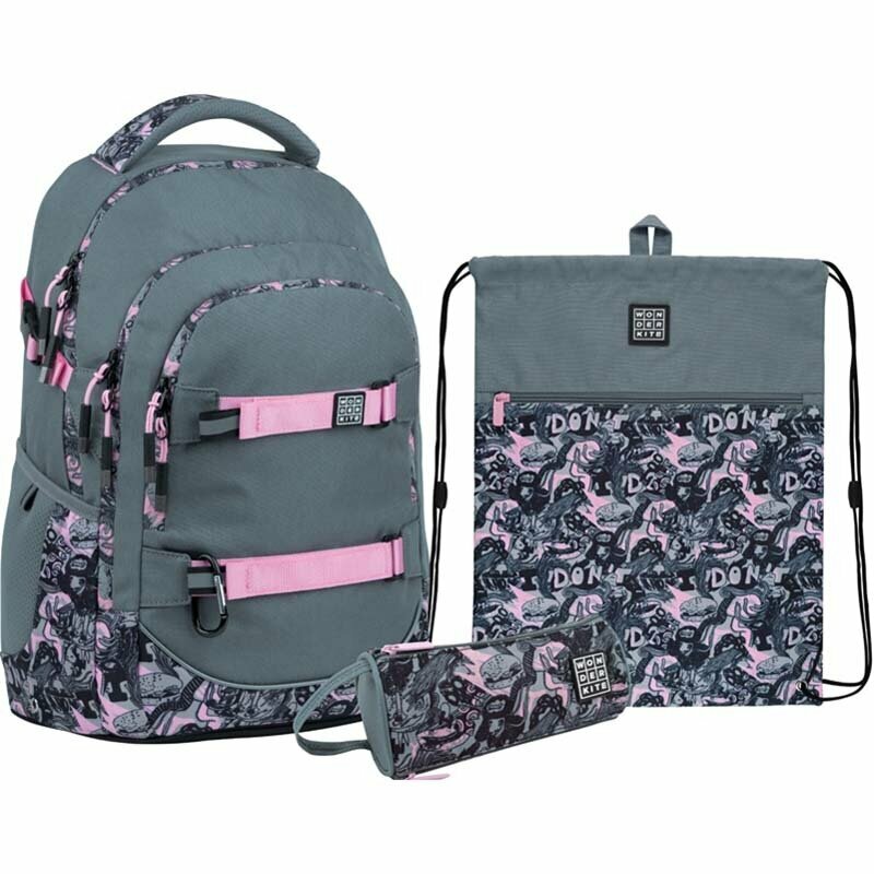 Набор школьный рюкзак с ортопедической спинкой Wonder Kite, грудная стяжка + пенал + мешок для обуви WK 727 Fresh