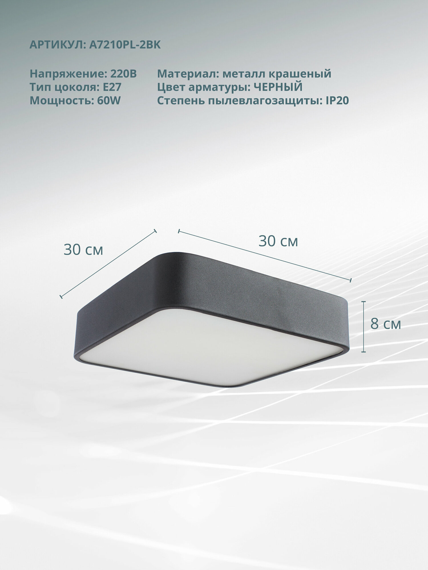 Светильник потолочный 300*300мм 2*E27 Arte lamp A7210PL-2BK Cosmopolitan