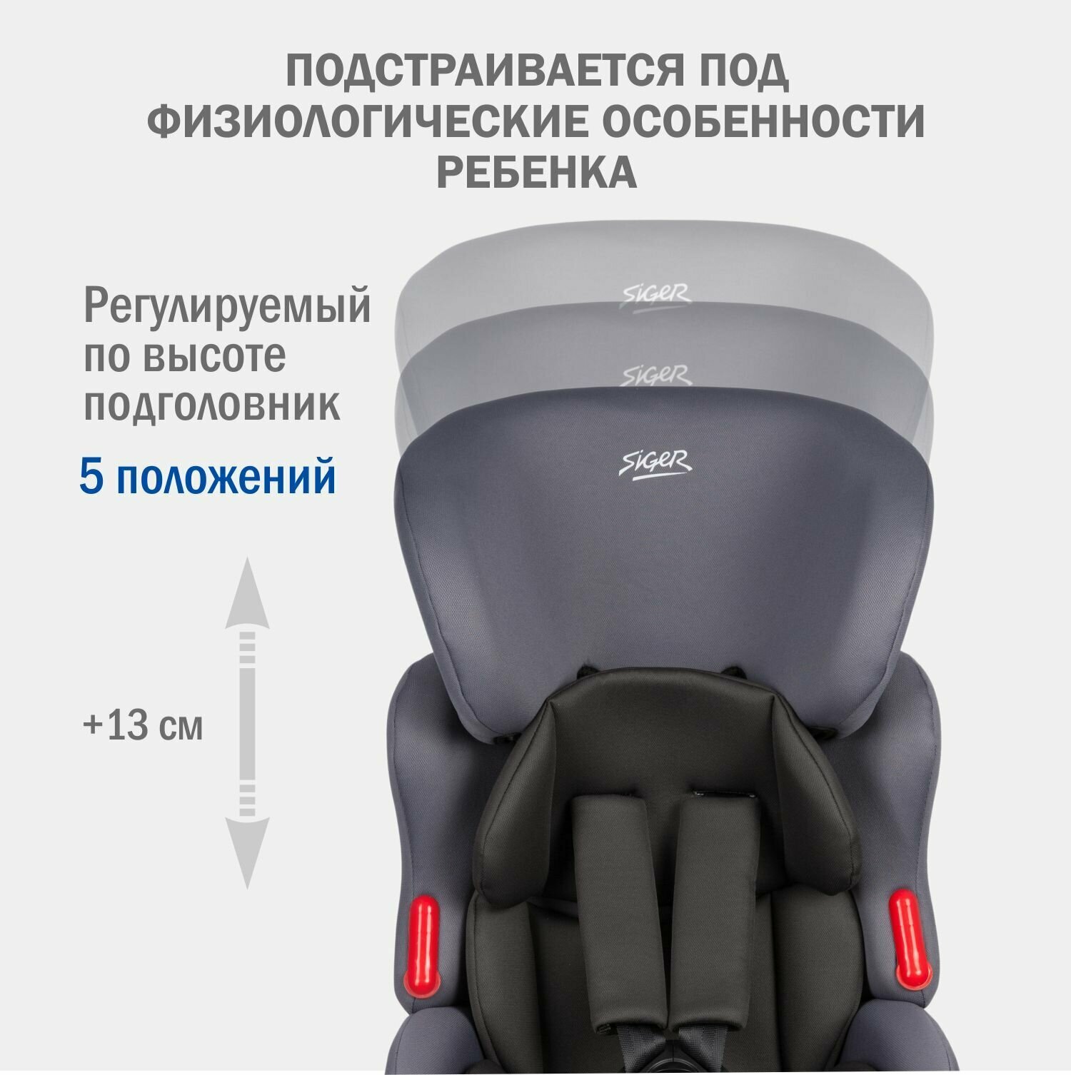 Автокресло Siger космо Lux, гр. 1+2+3 (9-36кг), серый