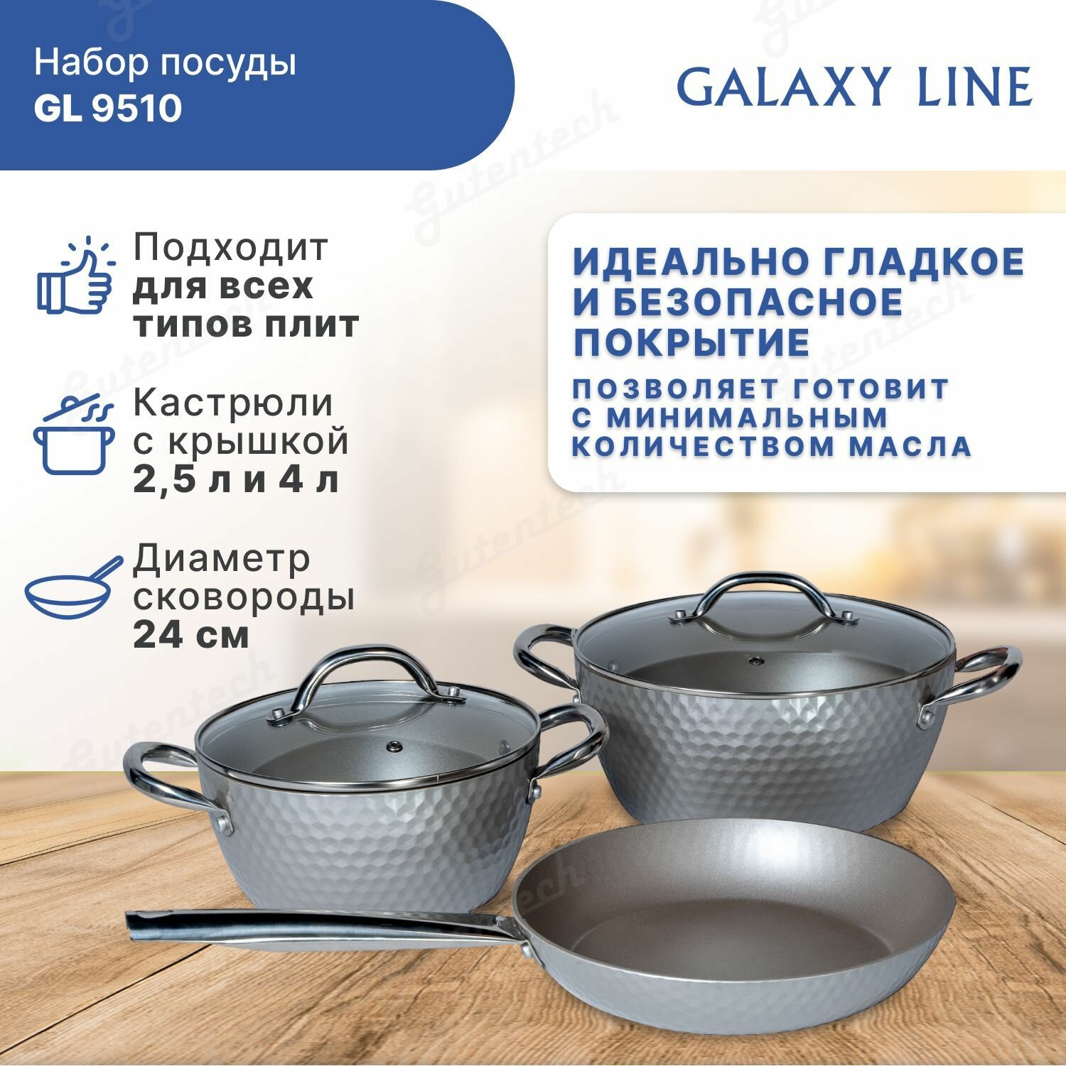 Набор посуды с антипригарным покрытием GALAXY LINE GL9510 (серебристый)