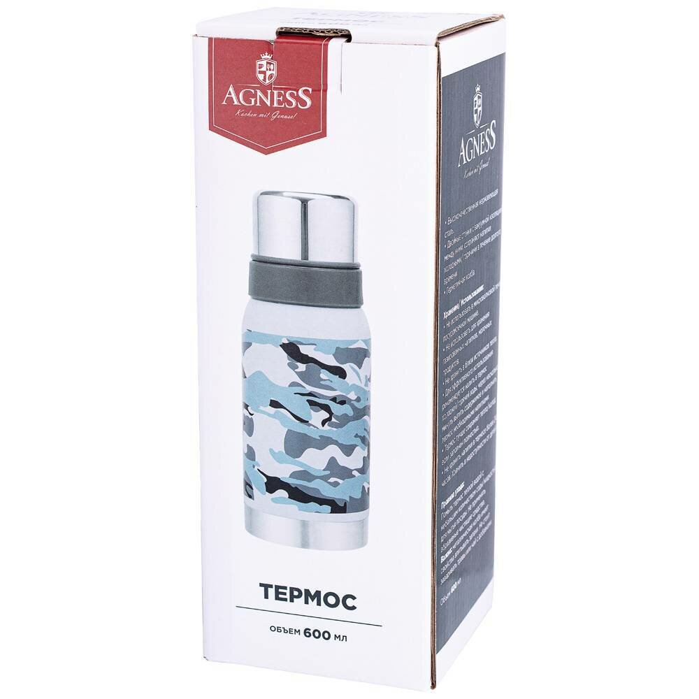Термос Agness с узким горлом , колба нержавеющая сталь, с двумя крышками-чашками, 600 мл (910-100)