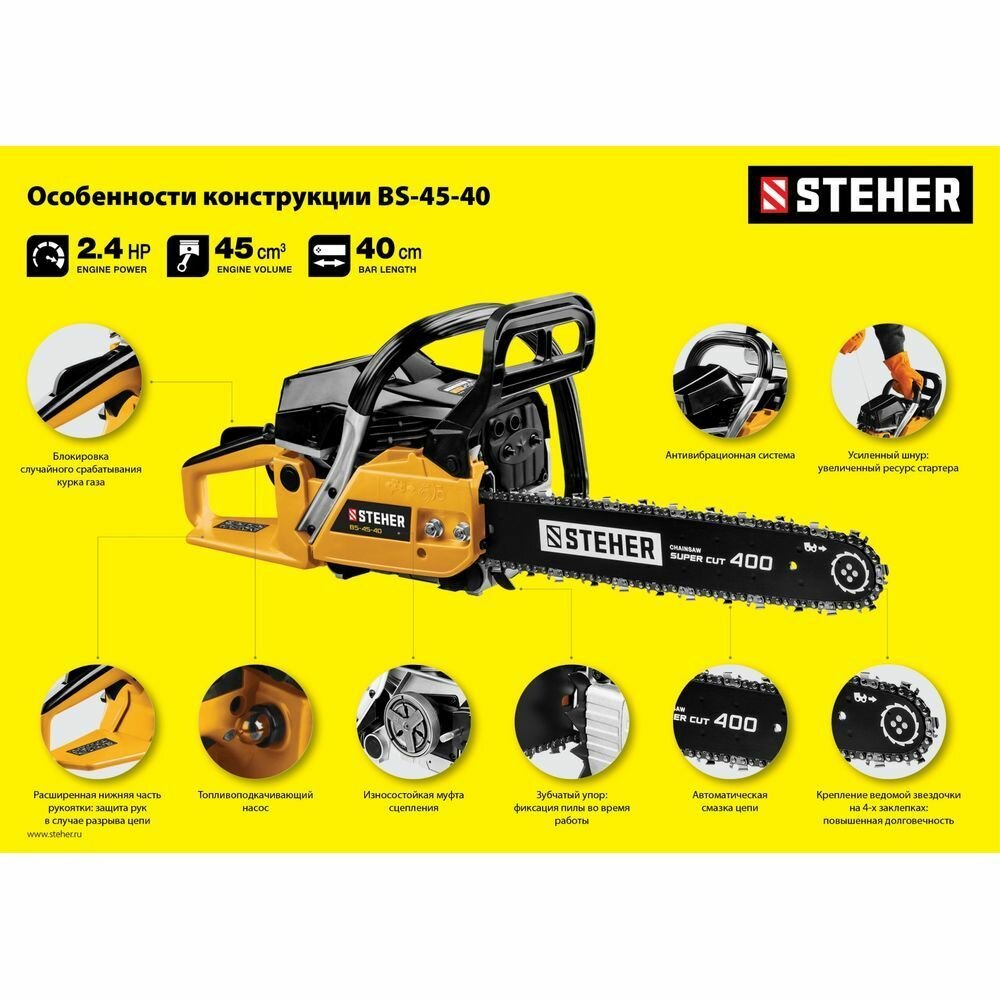STEHER 1.8 кВт/2.4 л. с, 400 мм, пила цепная бензиновая (BS-45-40)