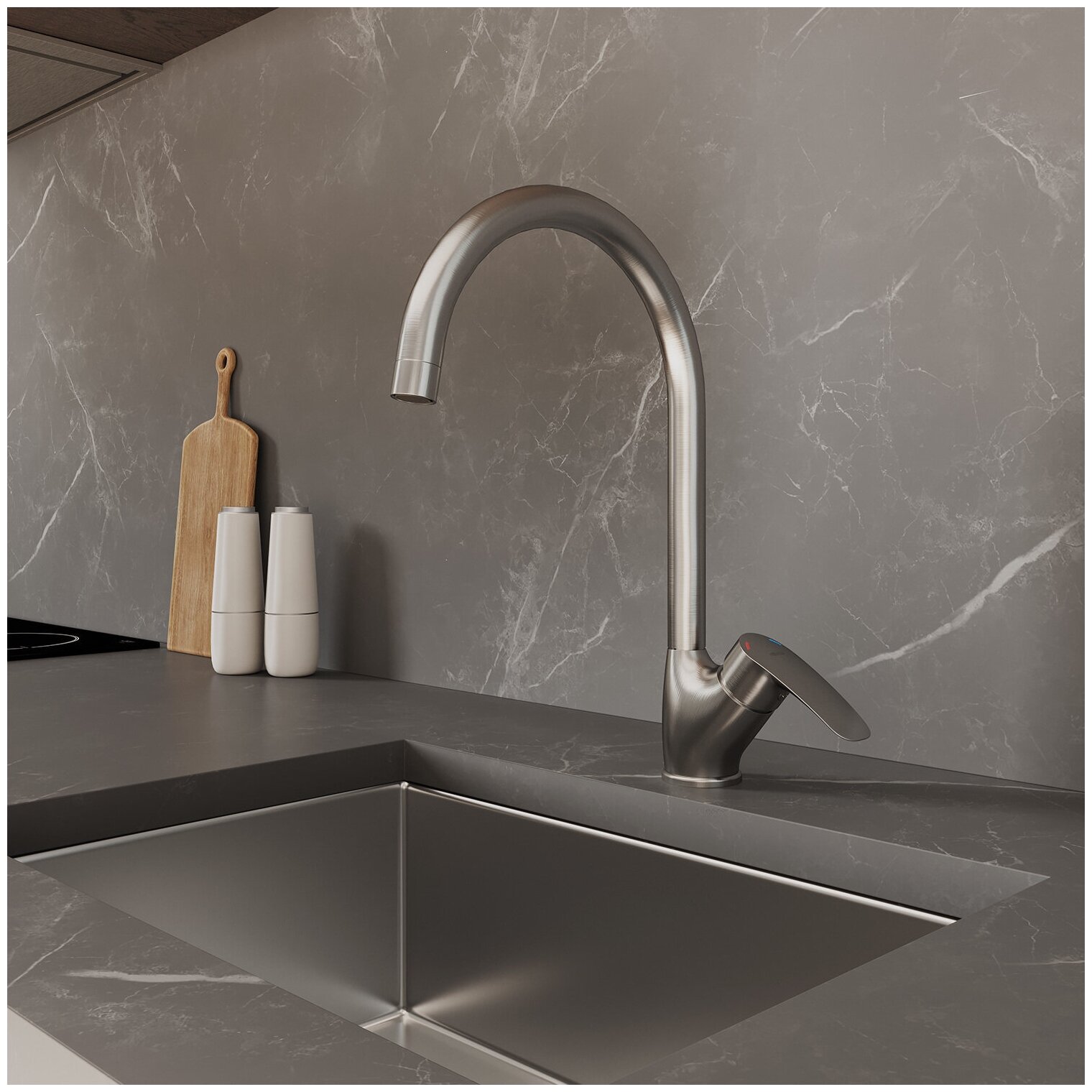 Смеситель для кухни Milardo Rora сатин с высоким изливом однорычажный (RORBN0JM05)
