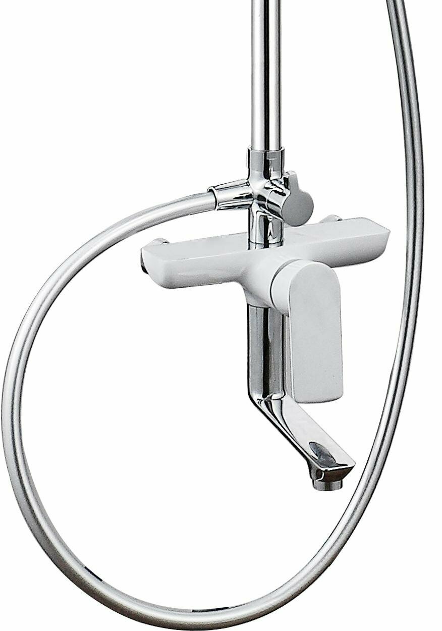 Душевая колонна Aquanet Arctic R со смесителем для ванны, верхний душ круг 220 мм, хром/белый 243325