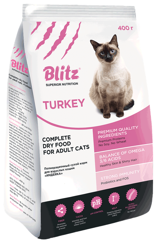 Блитц корм д/кошек с Индейкой ADULT CATS TURKEY 0,4 кг, шт