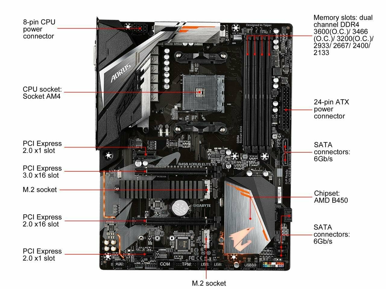 СохранитьМатеринская плата GIGABYTE B450 AORUS Elite V2 (rev. 1.0) Retail интересное: