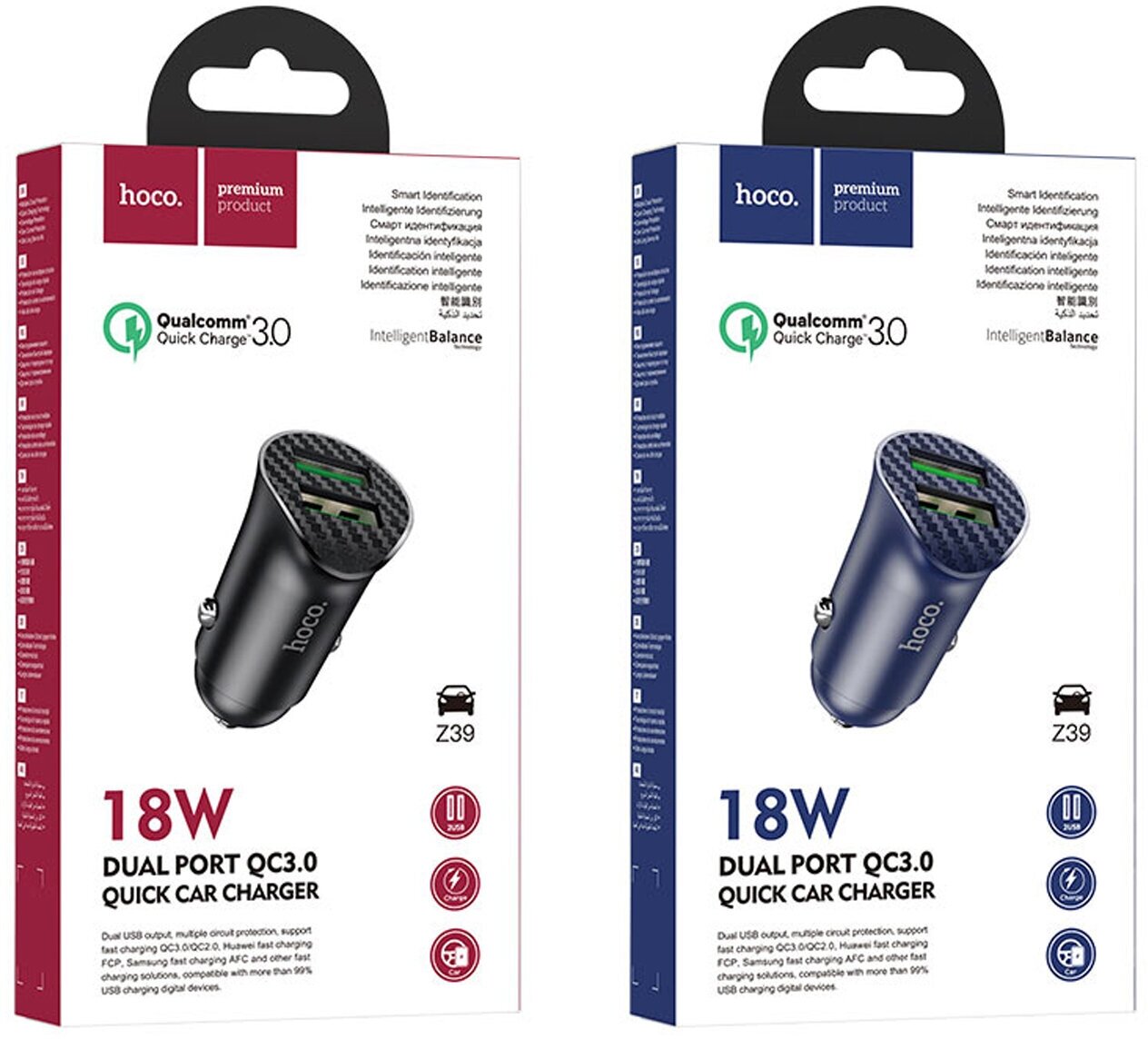 Автомобильное зарядное устройство, 2 USB 3.0 QC (Z39), 18W, HOCO, черный