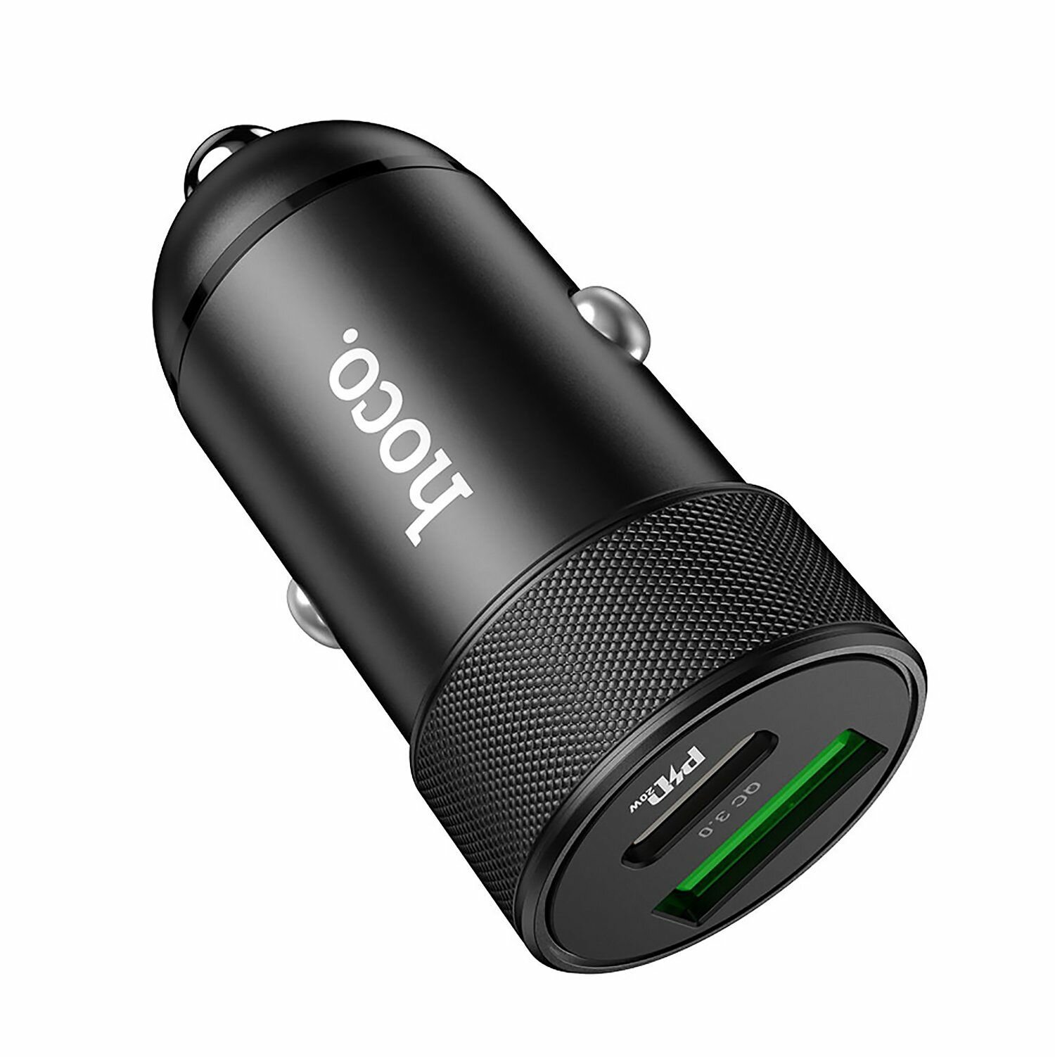 Зарядное устройство а/м 12V -> USB 5V hoco Z32B USB-A 18W, Type-C PD 20W, QC3.0/2.0, металл, чёрное
