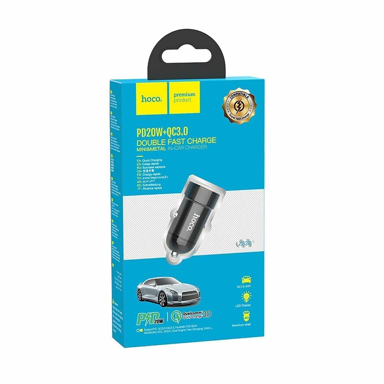 Автомобильное зарядное устройство (АЗУ) Hoco Z32B QC 3.0 (USB+Type-C) 3 А, черный