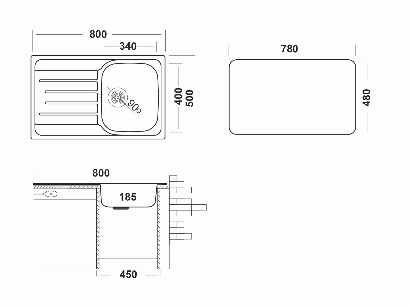 Врезная кухонная мойка "Юкинокс" Гранд GR*800.500 Лайн (0,8) чаша слева
