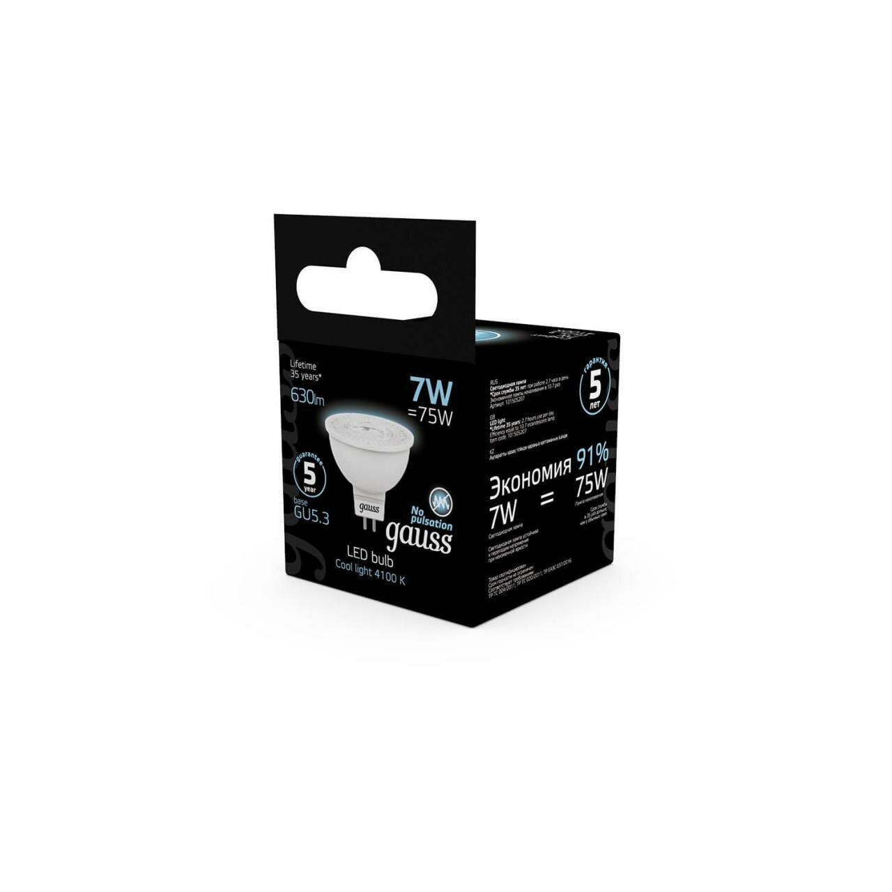 10шт/уп. Лампа LED Спот 7Вт 230B MR16 GU5.3 630Лм 4100К Свет Нейтральный белый арт. 101505207 Gauss, уп. 10шт