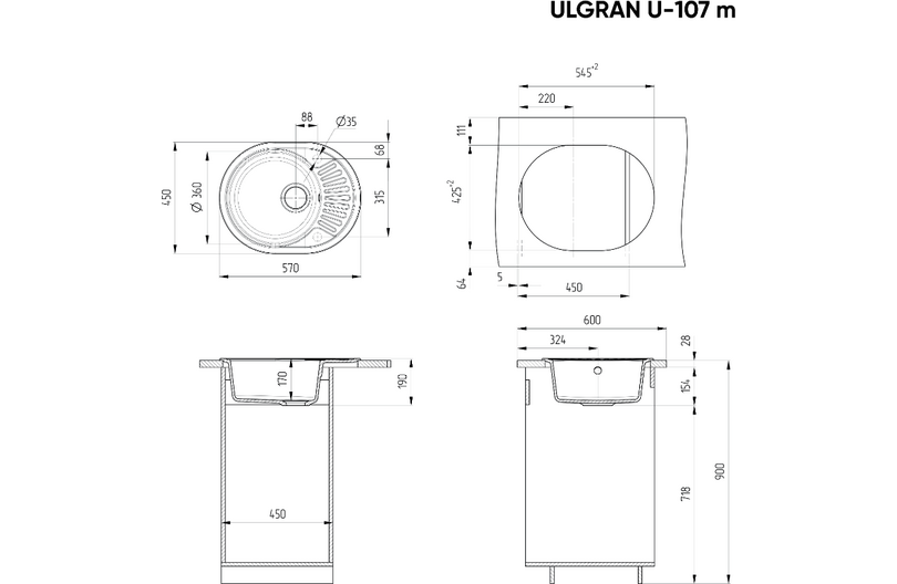 Мойка для кухни Ulgran U-107m (-341, ультра-белый)