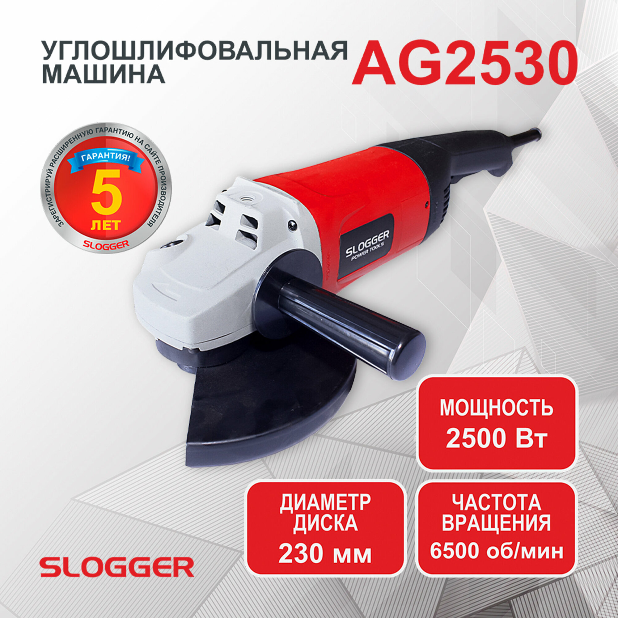 Угловая шлифмашина (УШМ) Slogger AG2530 2500Вт, 230мм