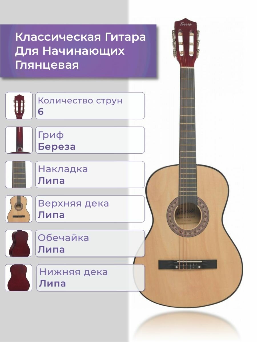 СохранитьКлассическая гитара - Terris TC-3801A NA, бежевый интересное: