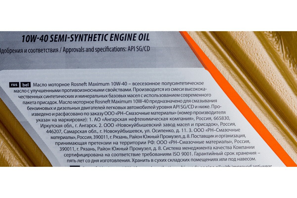 Масло моторное роснефть MAXIMUM полусинтетическое 10W40 4л