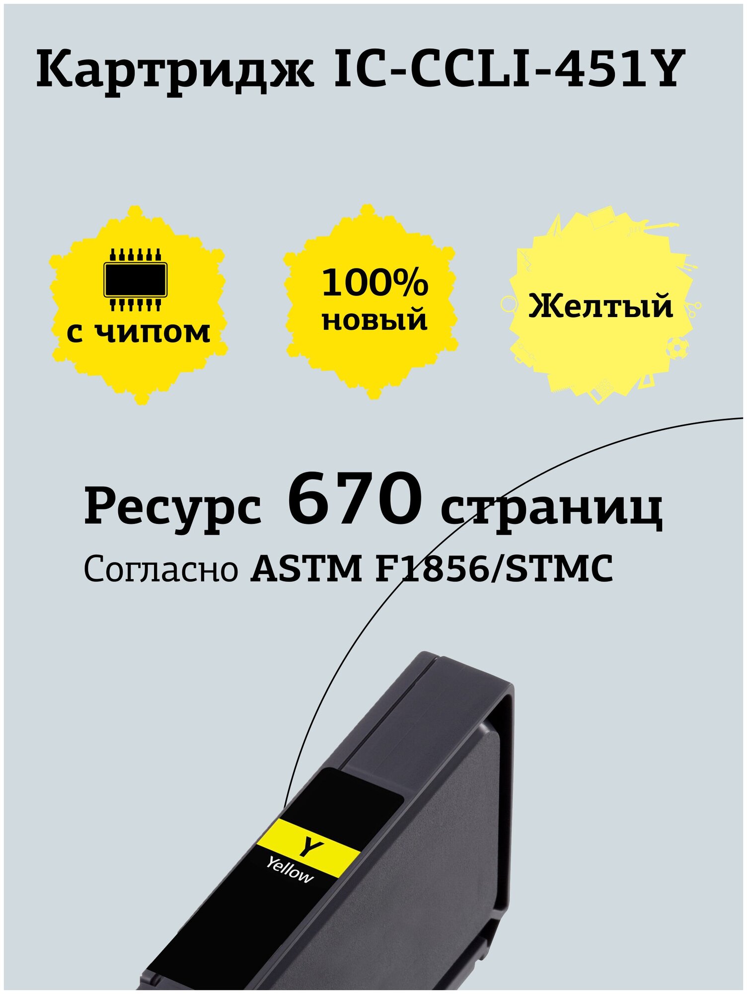 Струйный картридж T2 IC-CCLI-451Y для принтеров Canon, желтый (yellow), совместимый.