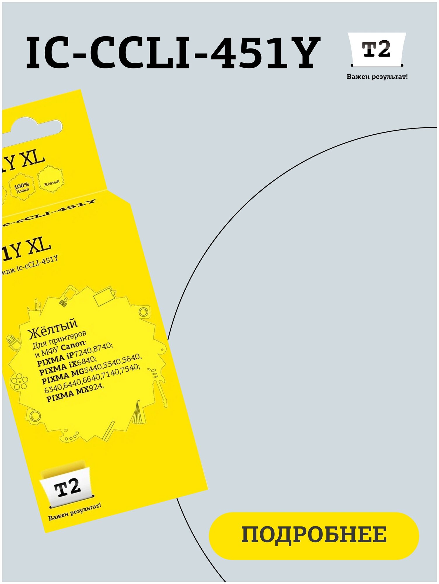 T2 Расходные материалы CLI-451Y XL Картридж IC-CCLI-451Y для Canon PIXMA iP7240 MG5440 6340 MX924, желтый, с чипом