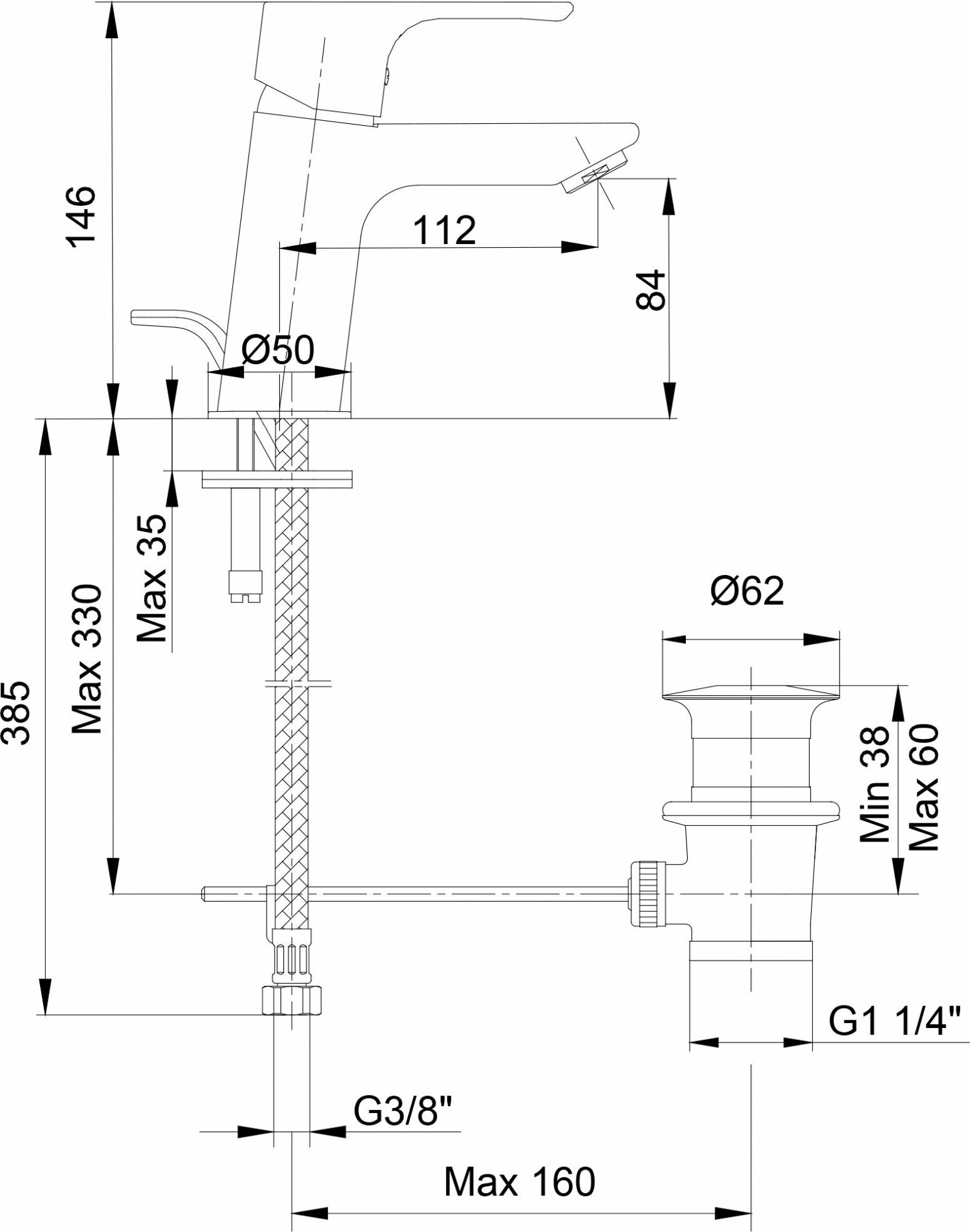 Смеситель E.C.A. Niobe 102188056EX для раковины с донным клапаном