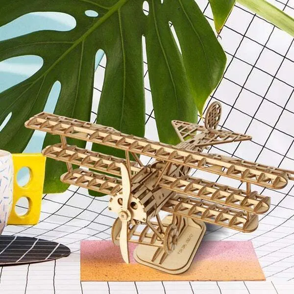 Купить Деревянный конструктор 3D Robotime Самолет - Биплан