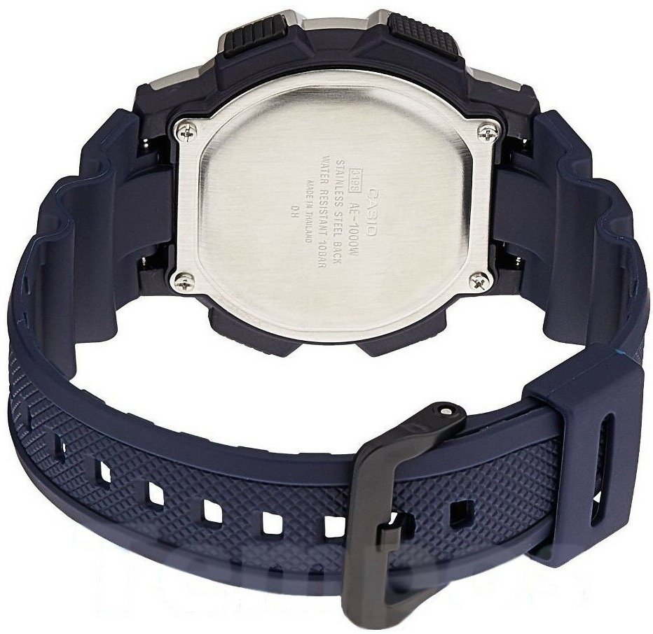 Наручные часы CASIO AE-1000W-2A кварцевые, будильник, секундомер, таймер обратного отсчета, водонепроницаемые, подсветка дисплея, черный