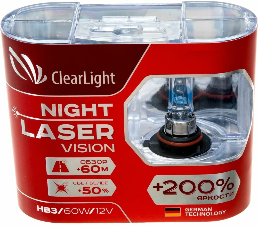 Лампа Clearlight HB3 12V-60W Night Laser Vision +200% Light (компл., 2 шт.)