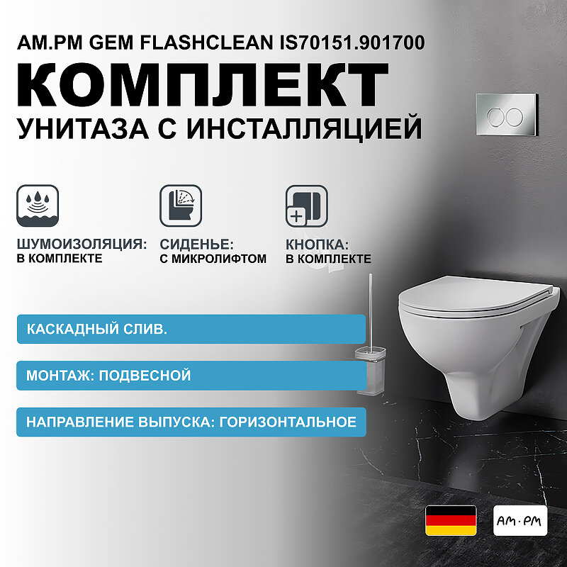 Комплект инсталляции Am.Pm IS70151.901700 с сиденьем м/л, с клавишей ProC L глянц хром, с подв. унитазом Gem FlashClean