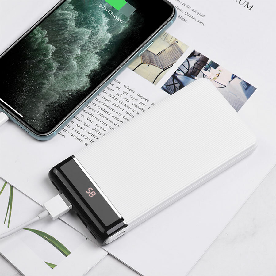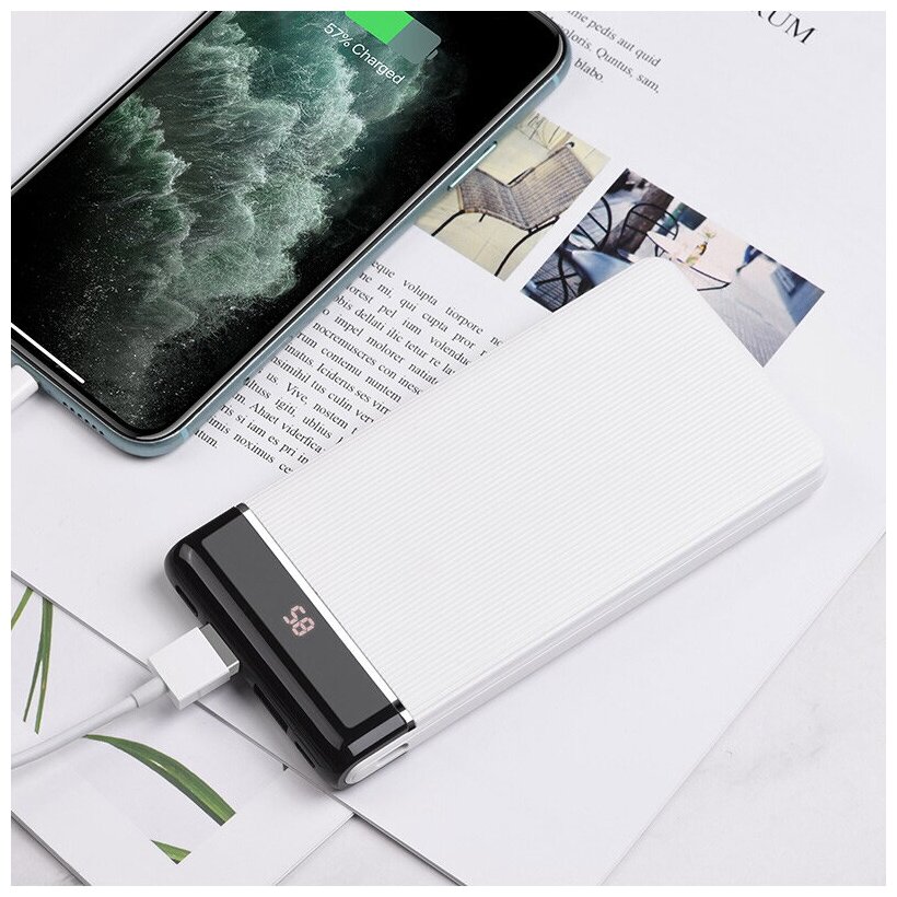 Аккумулятор внешний HOCO J59 Famous, 10000 mAh, 2 USB выхода, дисплей, цвет белый