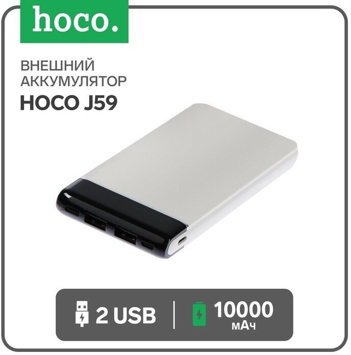 Внешний аккумулятор Hoco Power Bank J59, 10000 мАч, 2хUSB, 2 А, белый Hoco 7361612 .