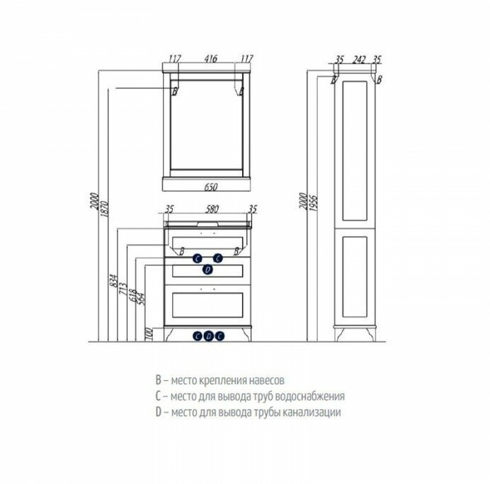 | Комплектация | 3 ящика, раковина и смеситель в комплект не входит |