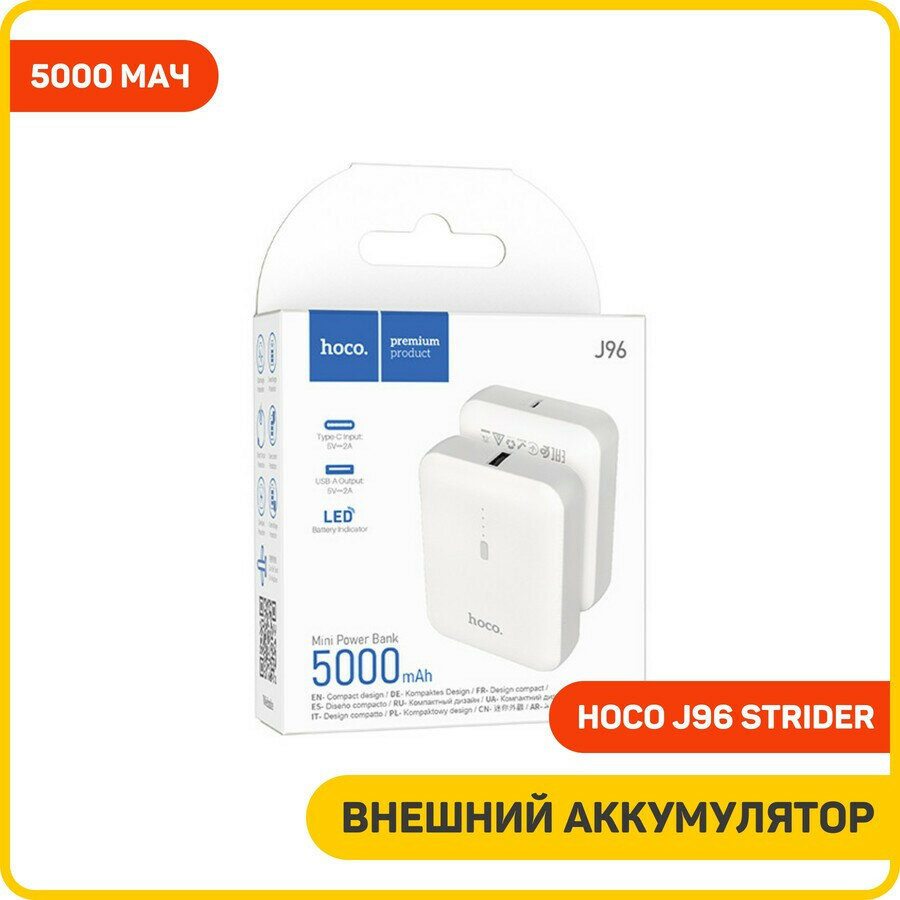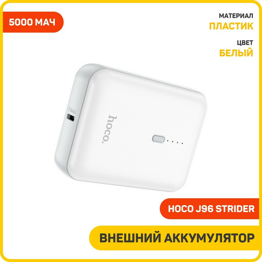 Внешний аккумулятор Hoco J96 Strider 5000mAh, белый