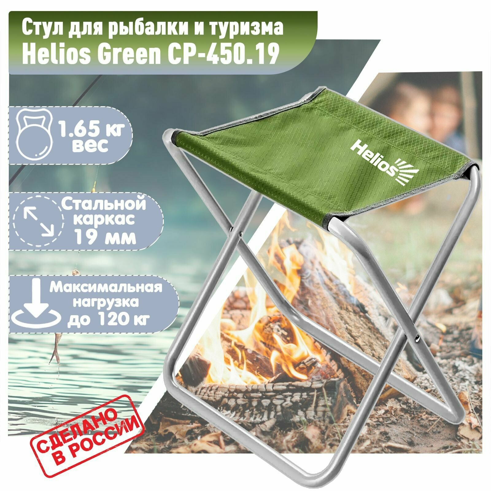 Стул туристический Helios Green СР-450.19 труба ф19 / Стул складной для рыбалки прочный интересное: