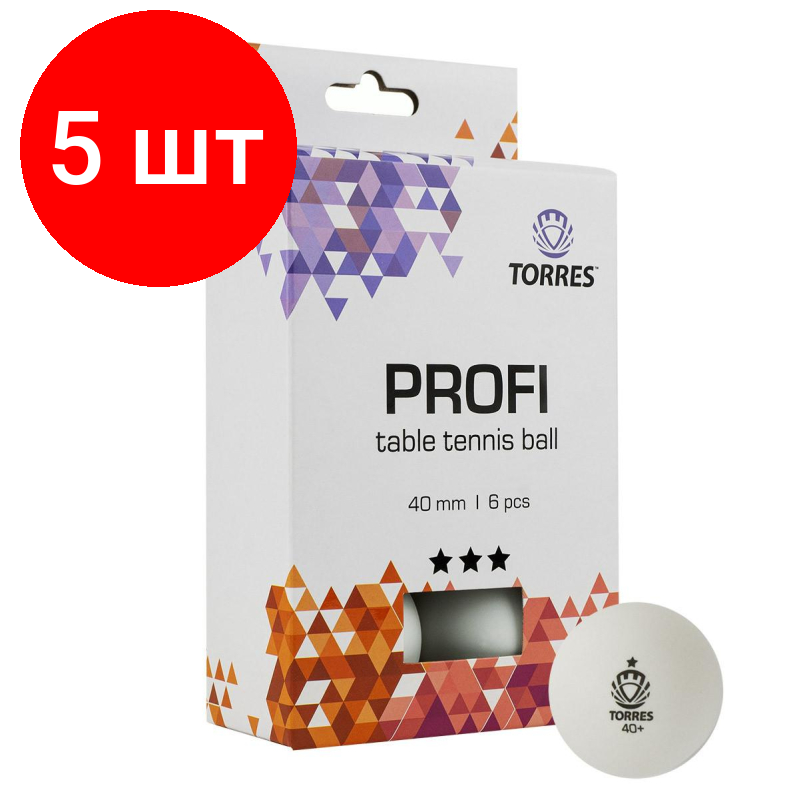 Мяч Torres "Profi", для настольного тенниса, 3 звезды, диаметр 40 мм, набор 6 штук, цвет белый