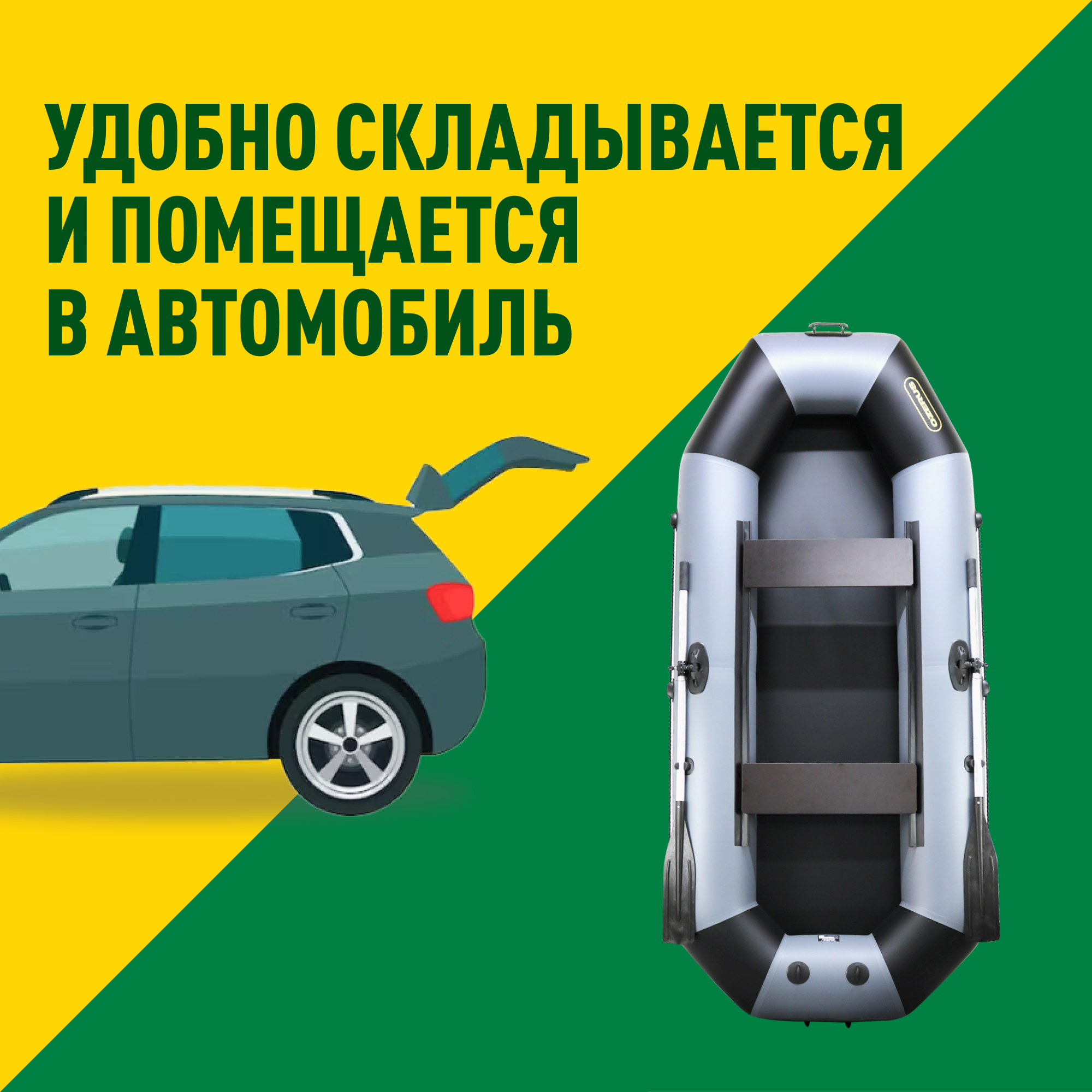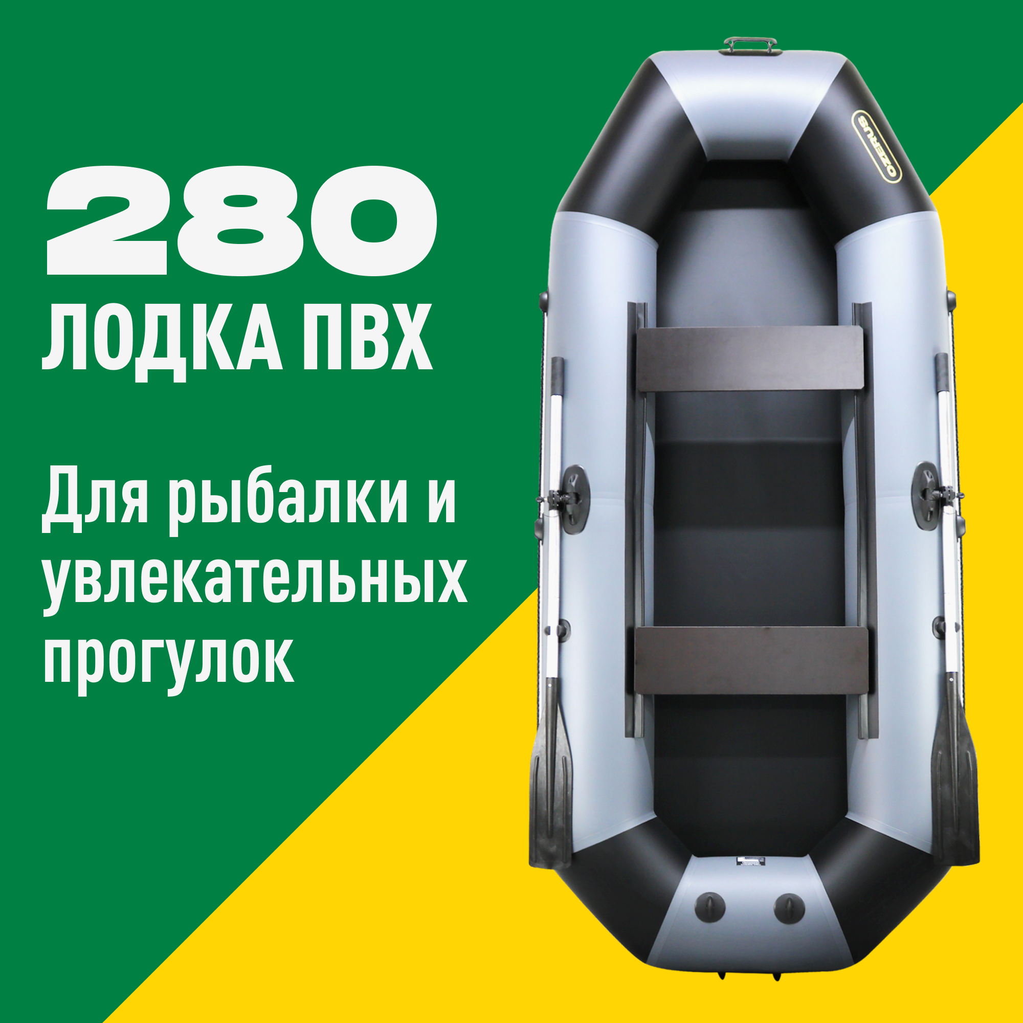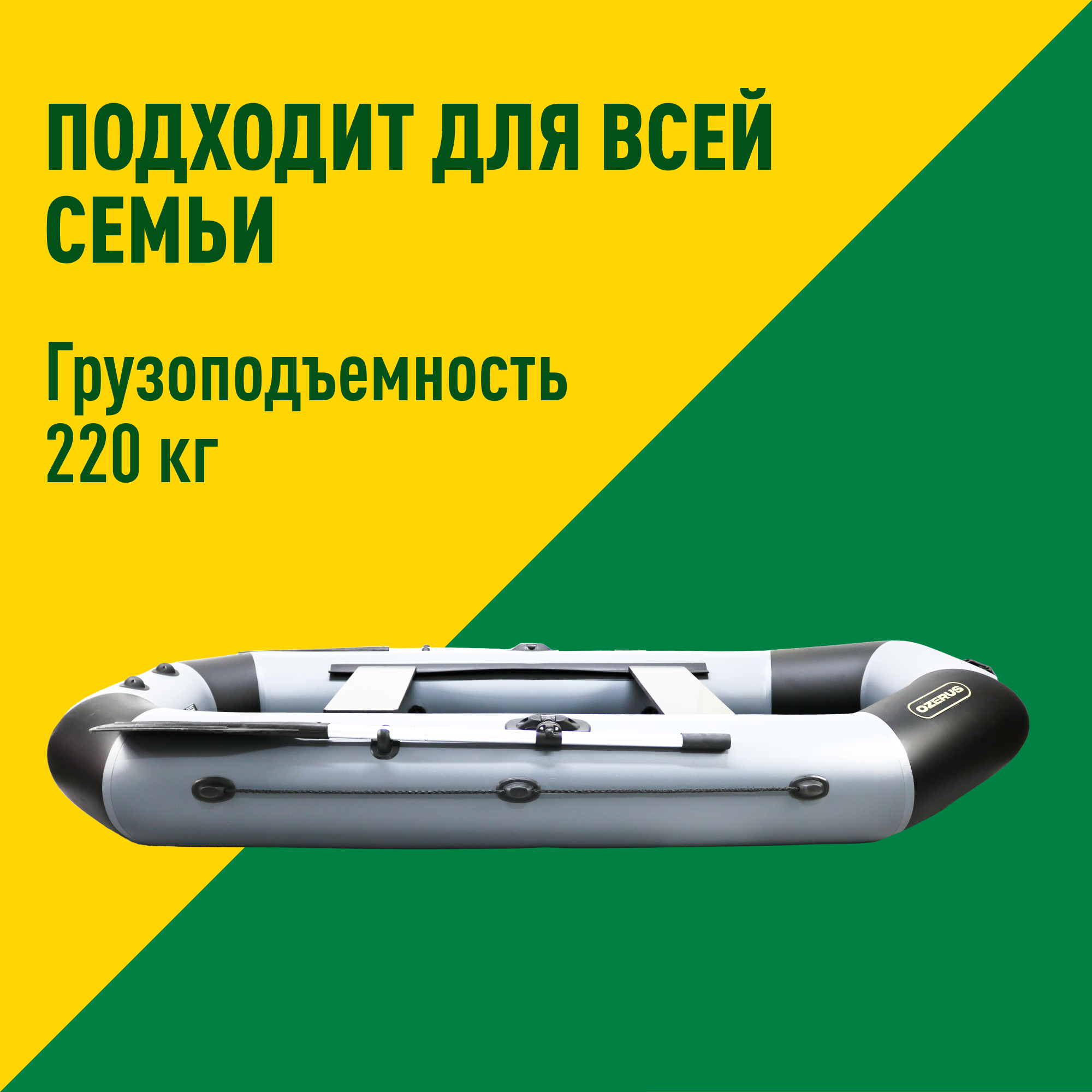 Лодка надувная для рыбалки ПВХ Озерус OZERUS 280 двухместная гребная, крепления для транца под мотор, серо-черная интересное: