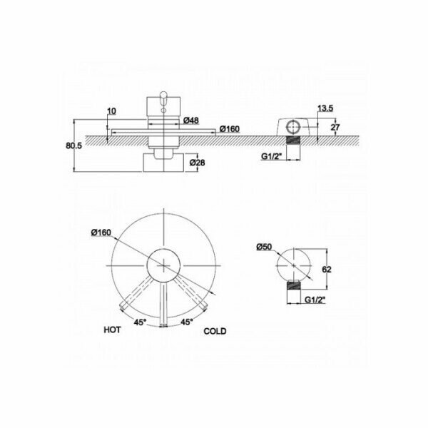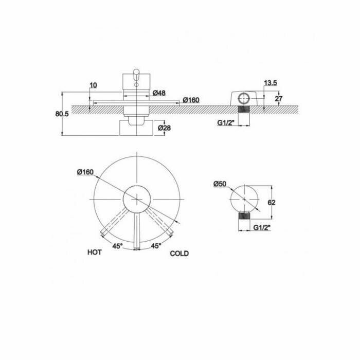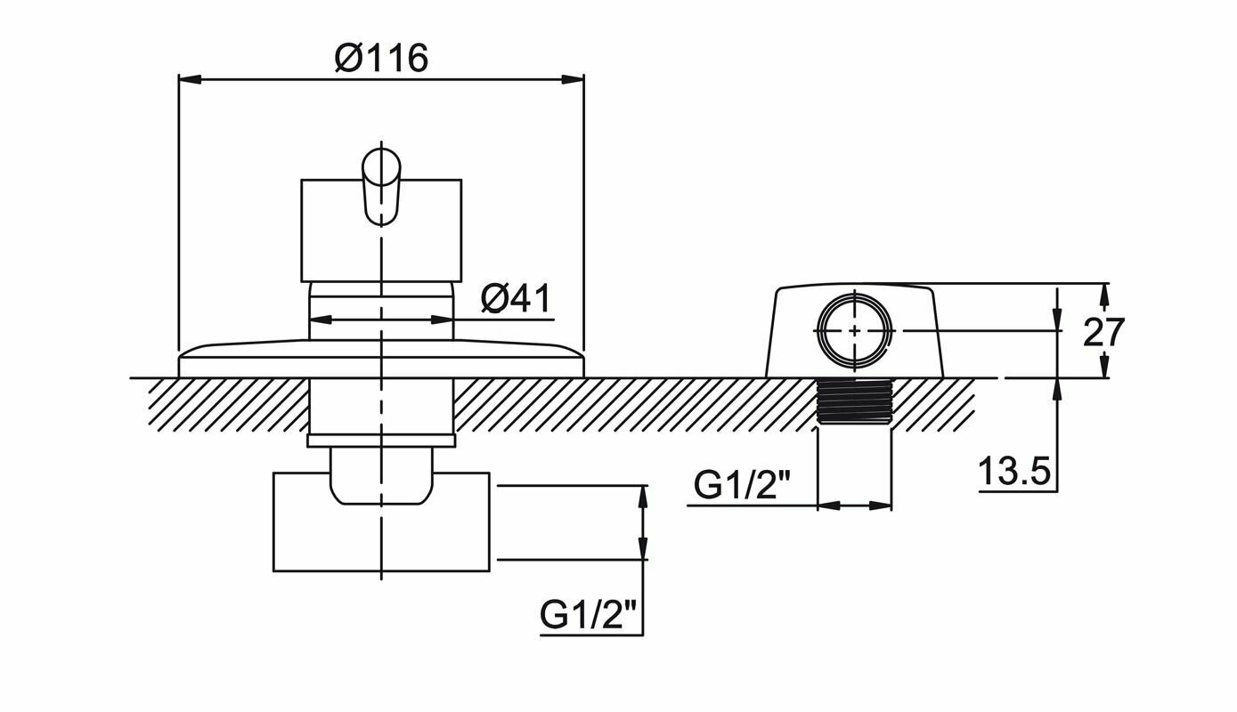 KAISER Для скрытого монтажа. Вывод под шланг. MERKUR 26017