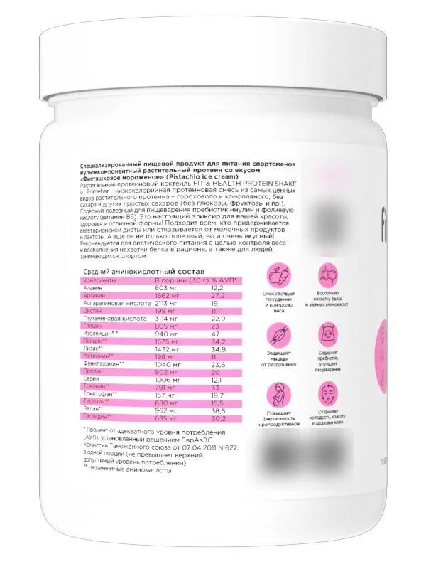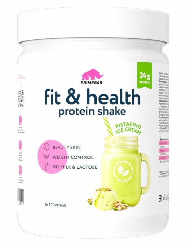 Растительный протеин Fit & Health Protein Shake PRIMEBAR Фисташковое мороженое, 500 г интересное: