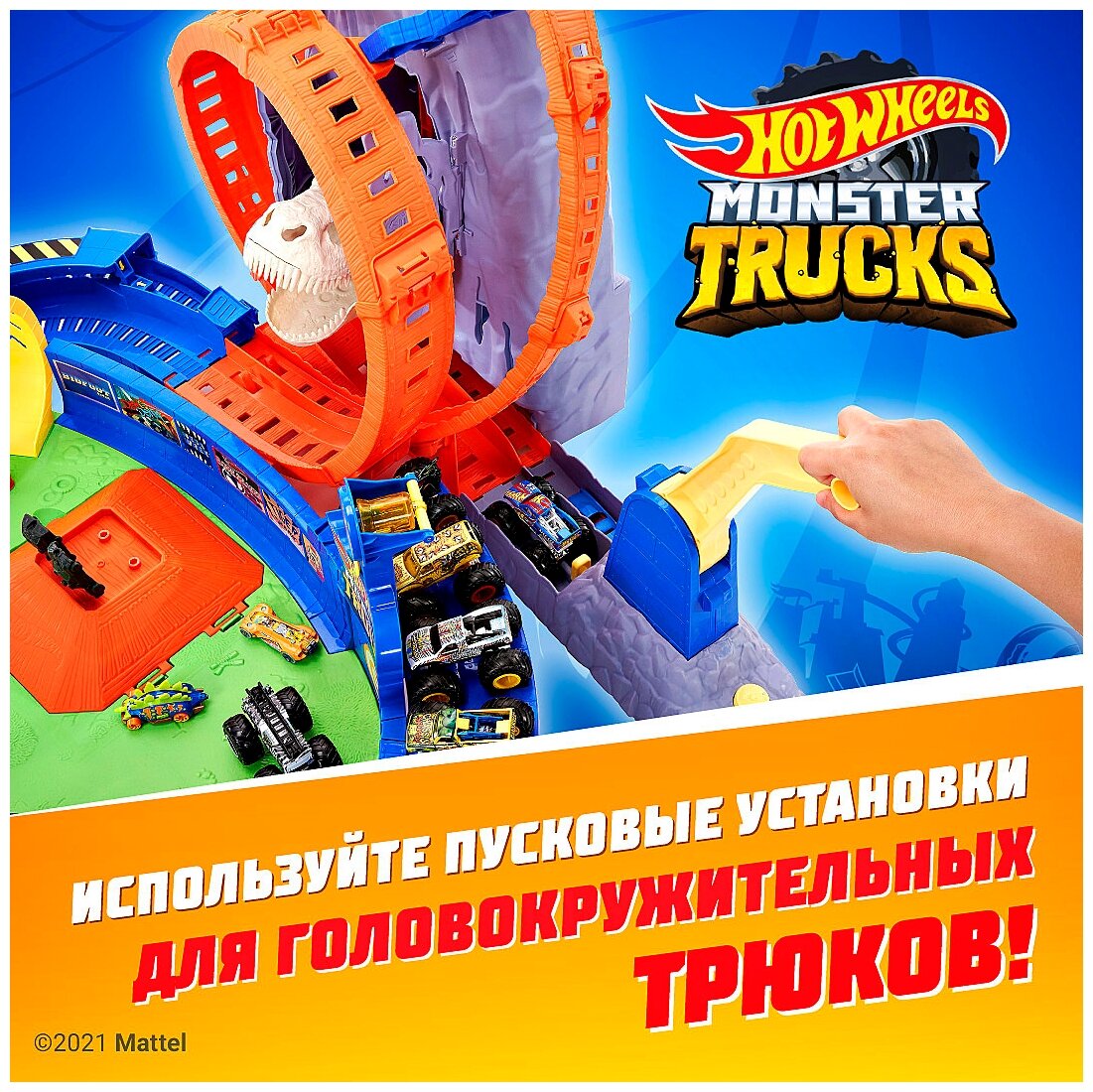 Игрушечный трек Hot Wheels Monster Trucks- Автомобильный трек Вулкан Ти-Рекс Арена для трюков Хот Вилс GYL14