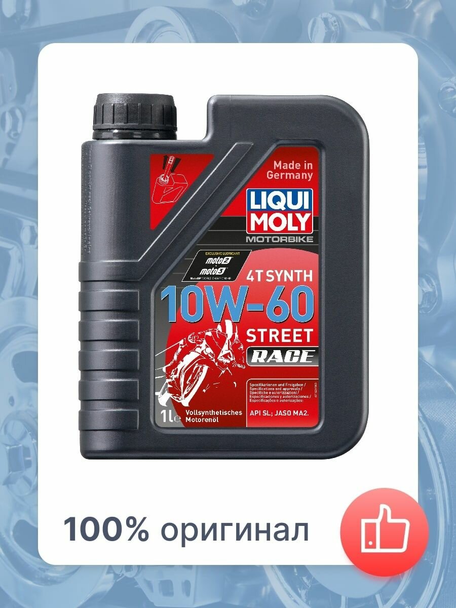 Синтетическое моторное масло LIQUI MOLY Motorbike 4T Synth 10W-60 Street Race, 1 л, 1 кг