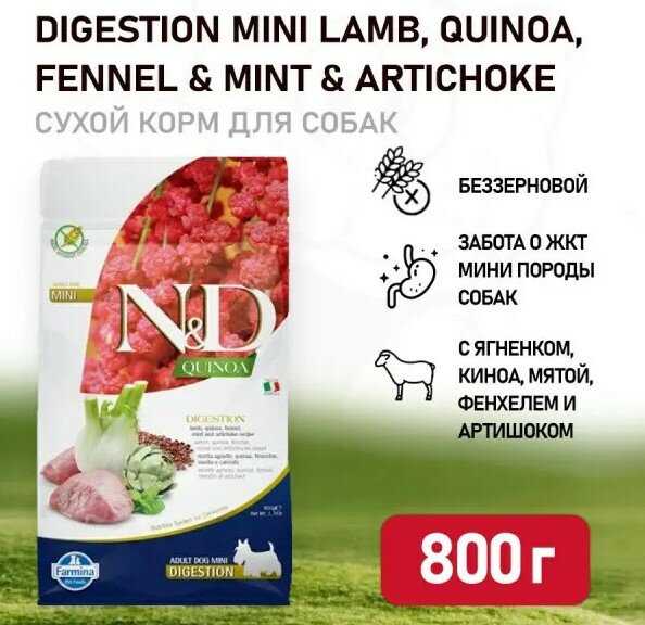 Сухой корм для собак Farmina N&D Quinoa, беззерновой, ягненок, с артишоком, с фенхелем, с мятой, с киноа 800 гр (для мелких пород)