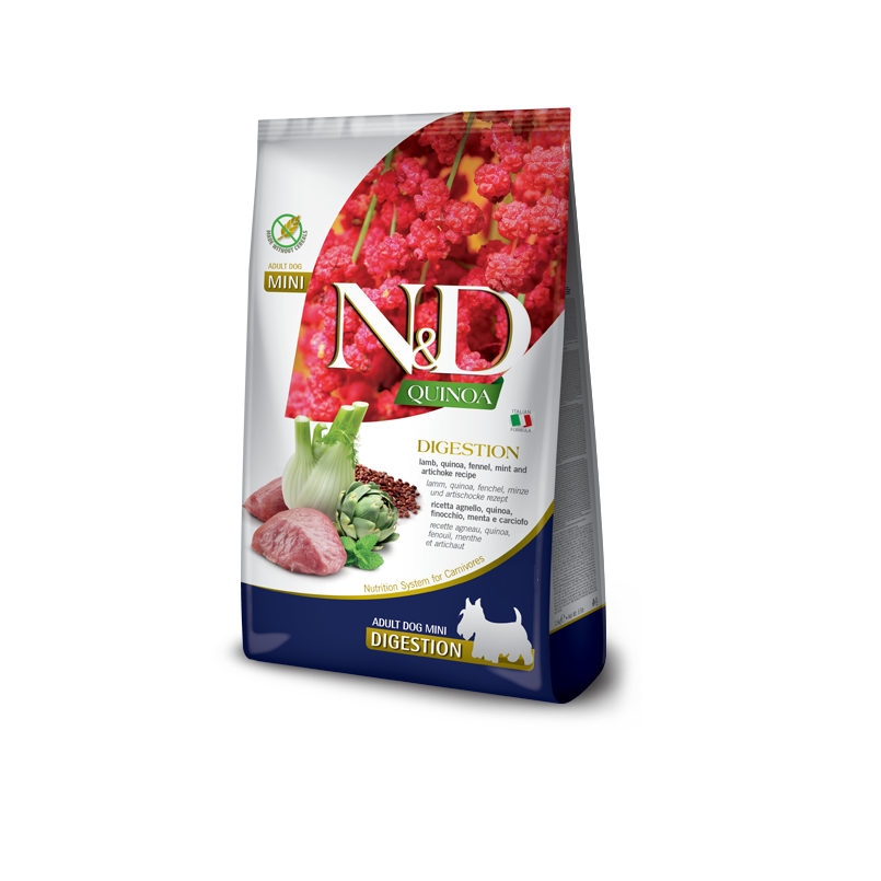 Сухой корм Farmina N&D Quinoa Digestion Lamb Adult Medium&Maxi, для взрослых собак средних и крупных пород, беззерновой, поддержка пищеварения, ягненок, киноа, фенхель, мята и артишок, 7 кг