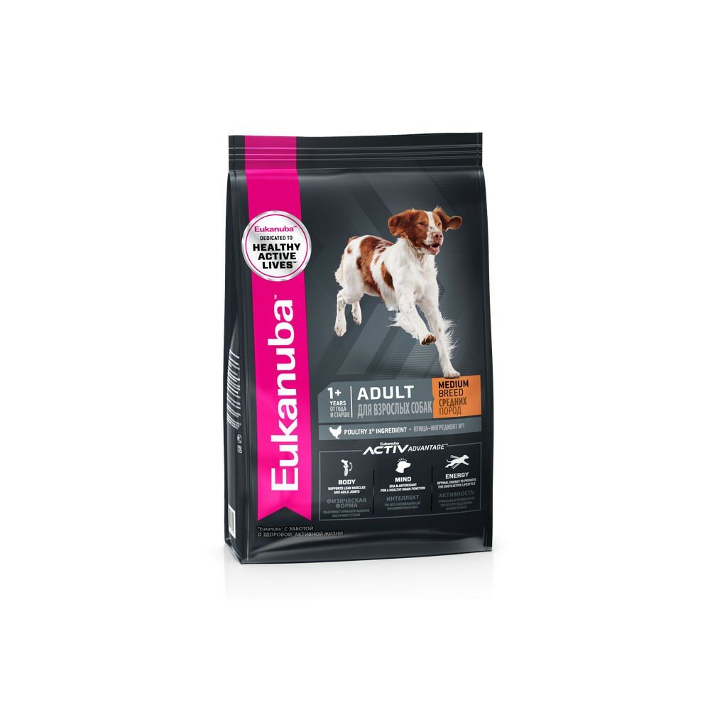 Сухой корм EUKANUBA ADULT MEDIUM BREED для взрослых собак средних пород с птицей (3 кг)
