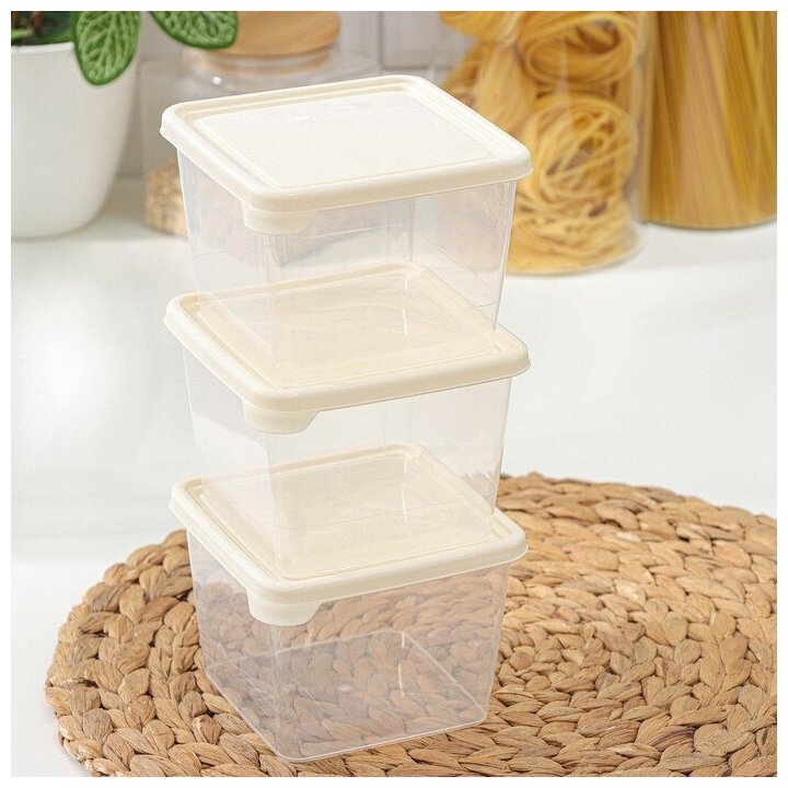 Набор контейнеров Sima-land пищевых Helisnki Artichoke, 3 шт, 750 мл, квадратные, цвет бежевый