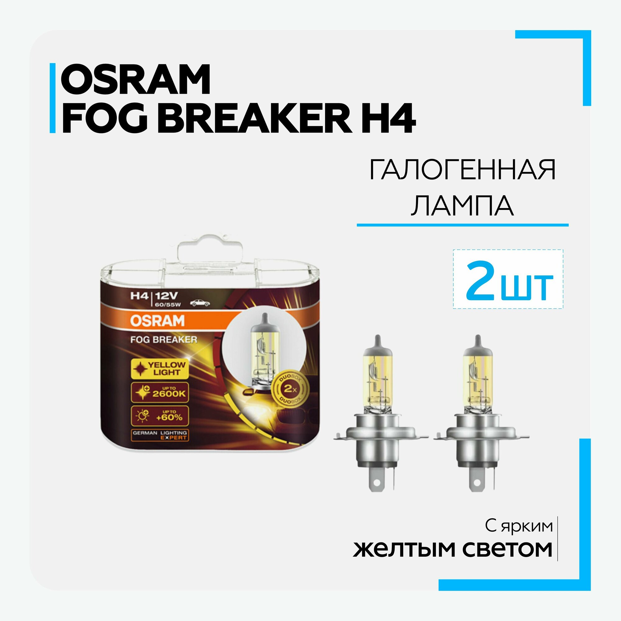 OSRAM 62193FBRHCB Комплект ламп H4 12V 60/55W P43t FOG BREAKER +60% больше света, 2600К 2шт.(1к-т)