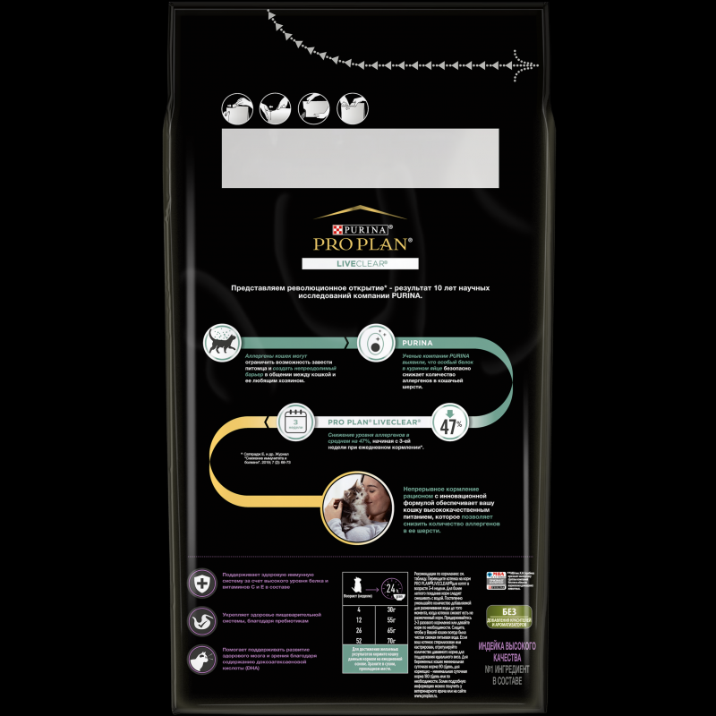 Сухой корм Pro Plan® LiveClear® для котят до 1 года, снижает количество аллергенов в шерсти, с высоким содержанием индейки, Пакет, 0,4 кг