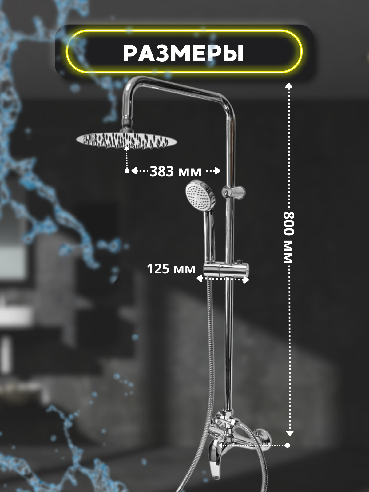 | Комплектация | смеситель – 1 шт / стойка - 1 шт / крепление для стойки – 1 шт. / тропический душ – 1 шт. / лейка – 1 шт / держатель для лейки – 1 шт / шланг для душа – 1 шт / дивертор - 1 шт / эксцентрик с отражателем – 2 шт |