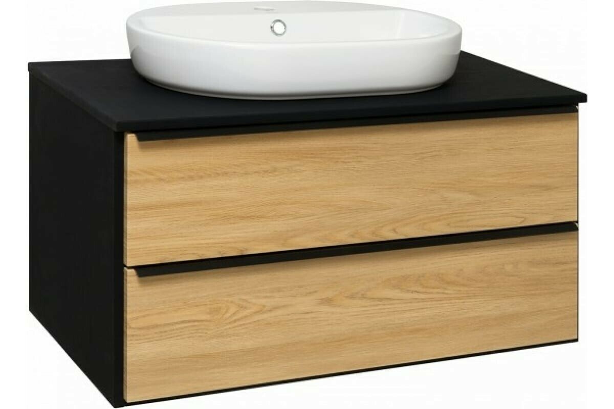Тумба для ванной комнаты Runo Мальта 85, ШхГхВ: 85х46х47 см, цвет: черный/дуб
