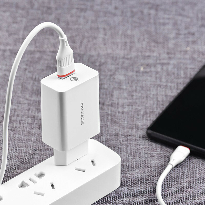 Сетевое зарядное устройство Borofone BA21A Long journey set with cable, 18 Вт, белый