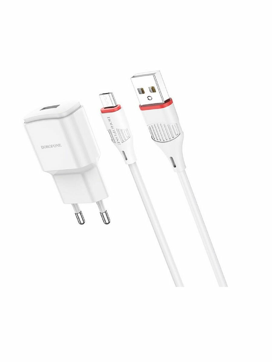 Сетевое зарядное устройство (СЗУ) Borofone BA48A (USB) + кабель MicroUSB, 2.1 А, белый