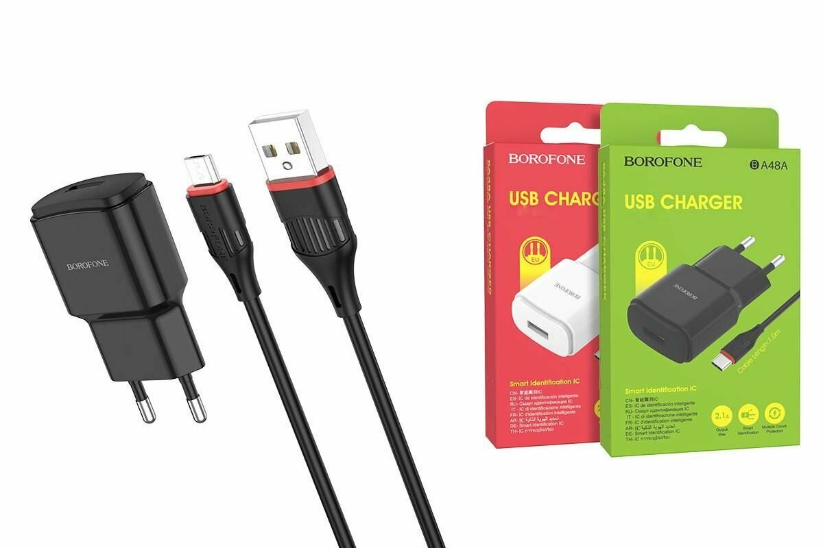 Сетевое зарядное устройство (СЗУ) Borofone BA48A (USB) 2.1 А, черный
