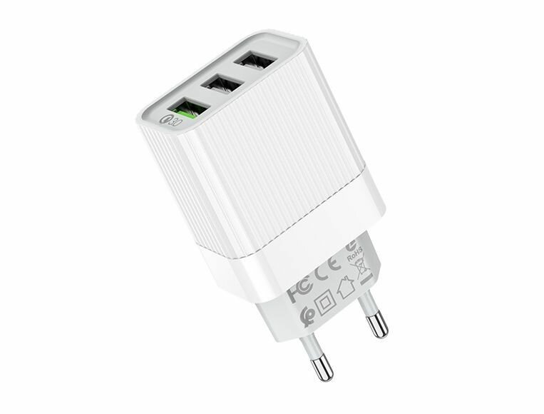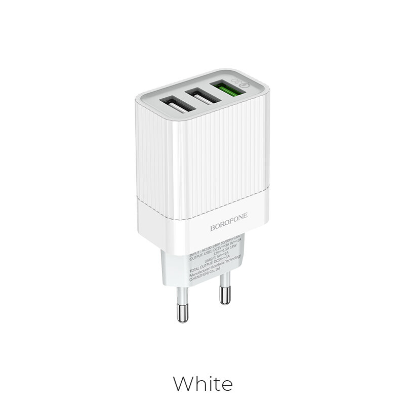 Сетевой адаптер на 3 USB Borofone BA40A, QC3.0, 18W, 3 А, 012338 Белый