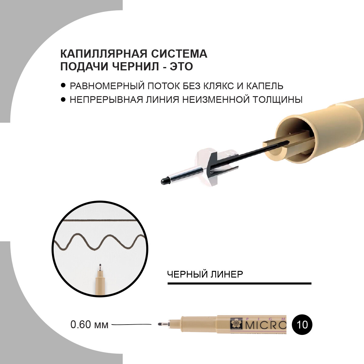 Ручка-линер капиллярная Pigma Micron, 0,7 мм., цвет чернил: черный